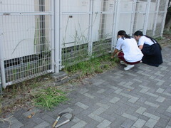 放課後は,鎌を使ってコンクリートの隙間に生えている草を抜きました。