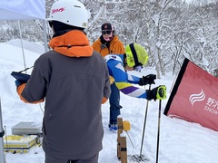 徳島県チームは明日の回転(SL)に備え、練習しました。
