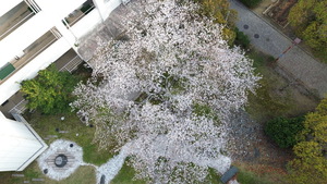 3月31日現在の本校中庭の桜です。(ドローンで上空からも写してみました)